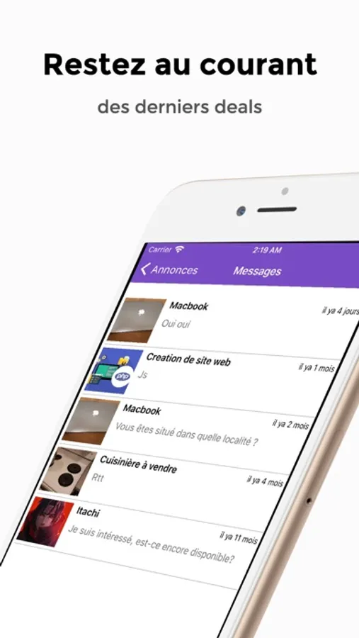 - Publiez des annonces facilement en incluant des photos directement importées de votre téléphone ou votre tablette
