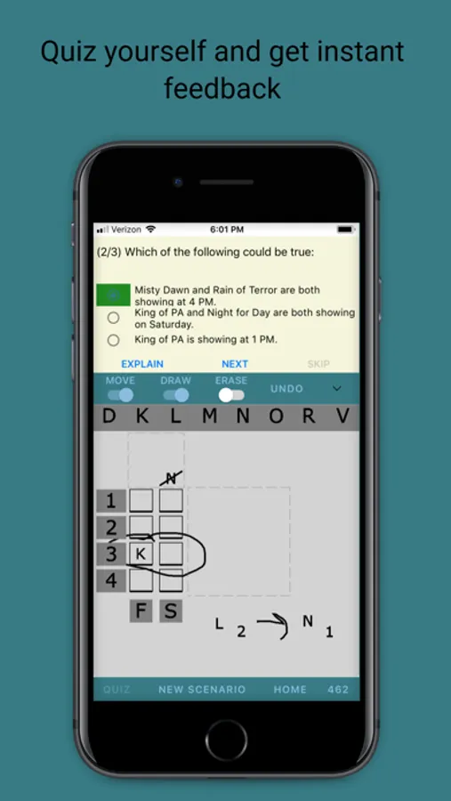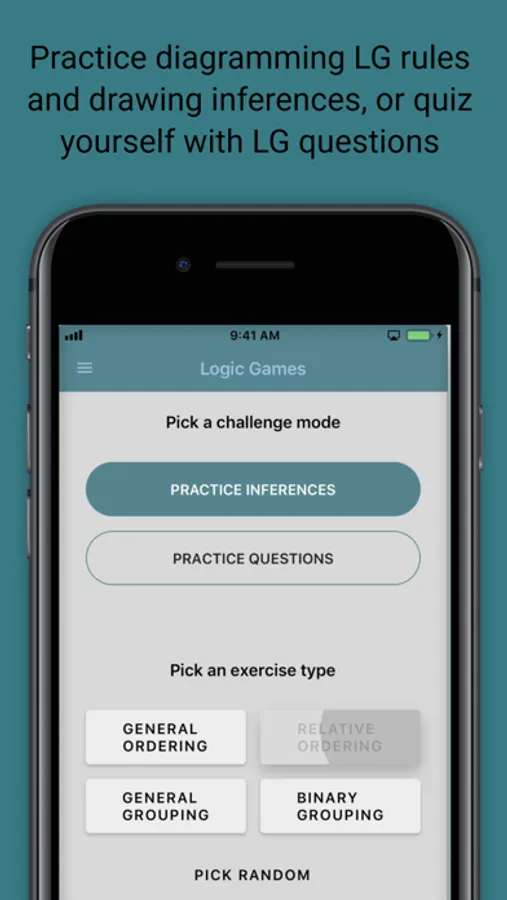 Work through an unlimited supply of novel LSAT-style logic games: practice drawing inferences and diagramming rules and scenarios - right in the app. The app will grade your work and show you correct responses. Drill yourself with an unlimited supply of app-generated logical questions.