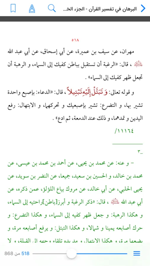 معاشر الناس، إن عليا والطيبين من ولدي هم الثقل الأصغر، والقرآن الثقل الأكبر، فكل واحد منبئ عن صاحبه، وموافق له، لن يفترقا حتى يردا علي الحوض، هم أمناء الله في خلقه، وحكماؤه في أرضه)، فطاعة لله عز وجل و لرسوله صلى الله عليه واله وسلم ولأهل بيته الطيبين الطاهرين المعصومين. نقدم لكم هذا التطبيق وهو تفسير كتاب الله المجيد بروايات اهل البيت عليهم السلام ما يسمى (التفسير بالماثور). وهو يحتوي على مجموعة من الكتب التي تختص بتفسير القرآن الكريم بحديث العترة الطاهرة صلوات ربي وسلامه عليهم. وهذا لا يعني انها خلية من أحاديث المخالفين .ولكن الاغلب حديث اهل البيت عليهم السلام الذي فسروا القرآن الكريم به.سائلين الله عز وجل أن يتقبله منا ويرضي عنا نبيه واهل بيته الأطهار وامامنا الحجة بن الحسن عجل ألله فرجه الشريف.