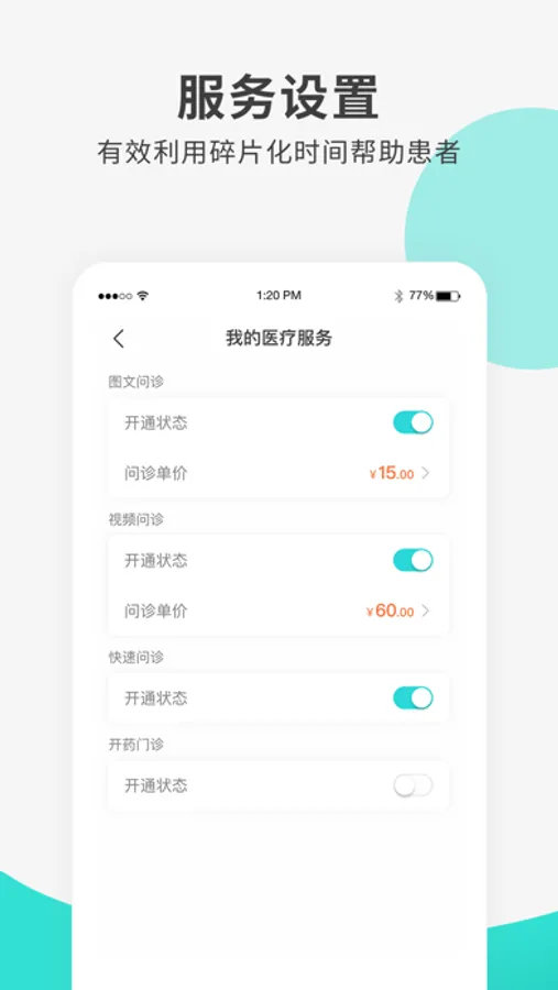【自主定价】自定义服务价格,自由安排时间,有效利用碎片时间为患者服务。