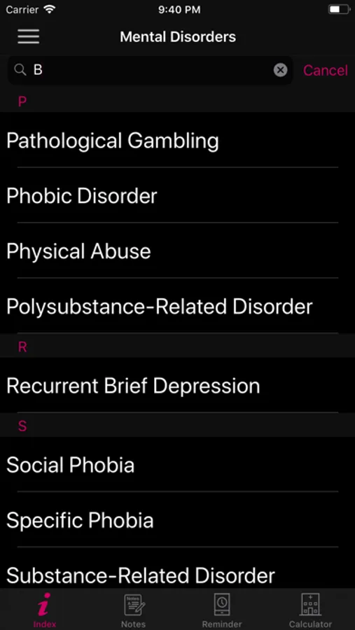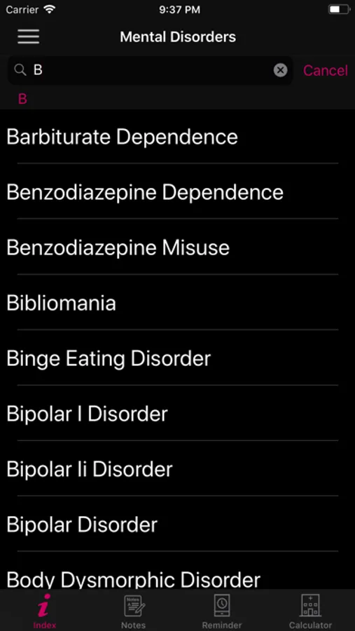 This app contains a description of mental disorders and mental illnesses : definitions , Signs , Symptoms, Syndromes ,Treatment, Diagnosis ....etc ! And more details !