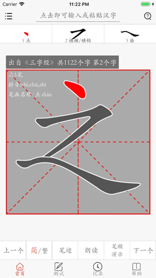 汉字笔画描红字帖-学习语文生字笔顺笔划的App
