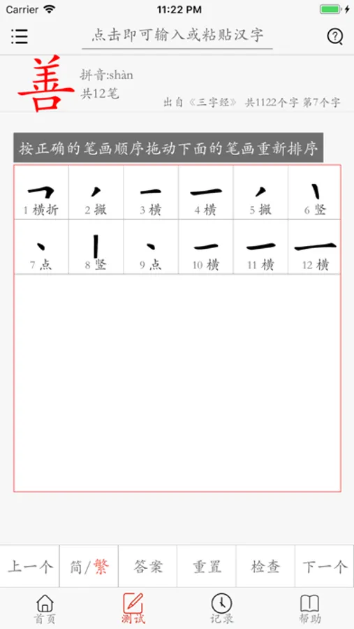 2. For those who have already started or learn to write, you can perform the Chinese character stroke test. The tester can drag each stroke (stroke) of the Chinese character to the correct position.