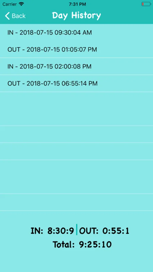 How many hours you spent inside the office, how much time you spent outside of the office, and the total time you spent in the office.
