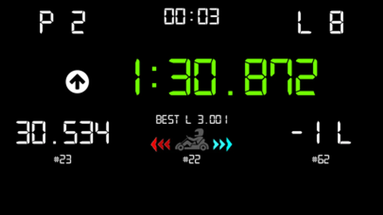 07 - Time difference between you and the kart ahead (does not consider backmarkers)
