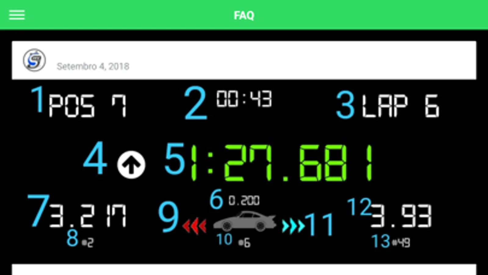 The app can be used on motor racing (go-kart, cars, motorbikes, etc)