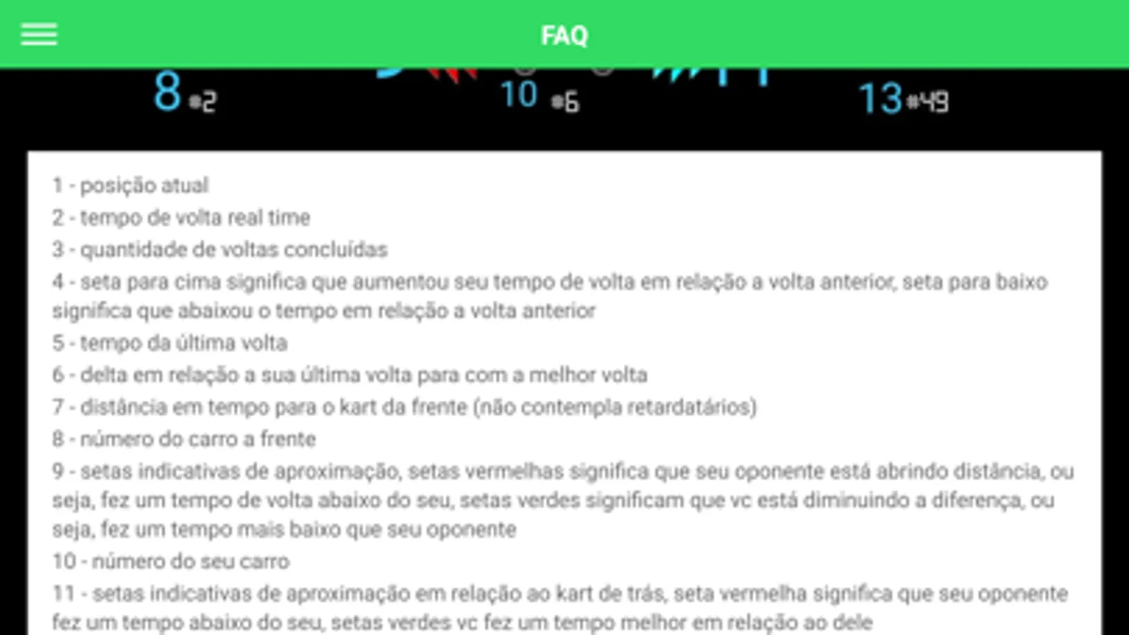 11 - Time difference between you and the kart behind (does not consider backmarkers)