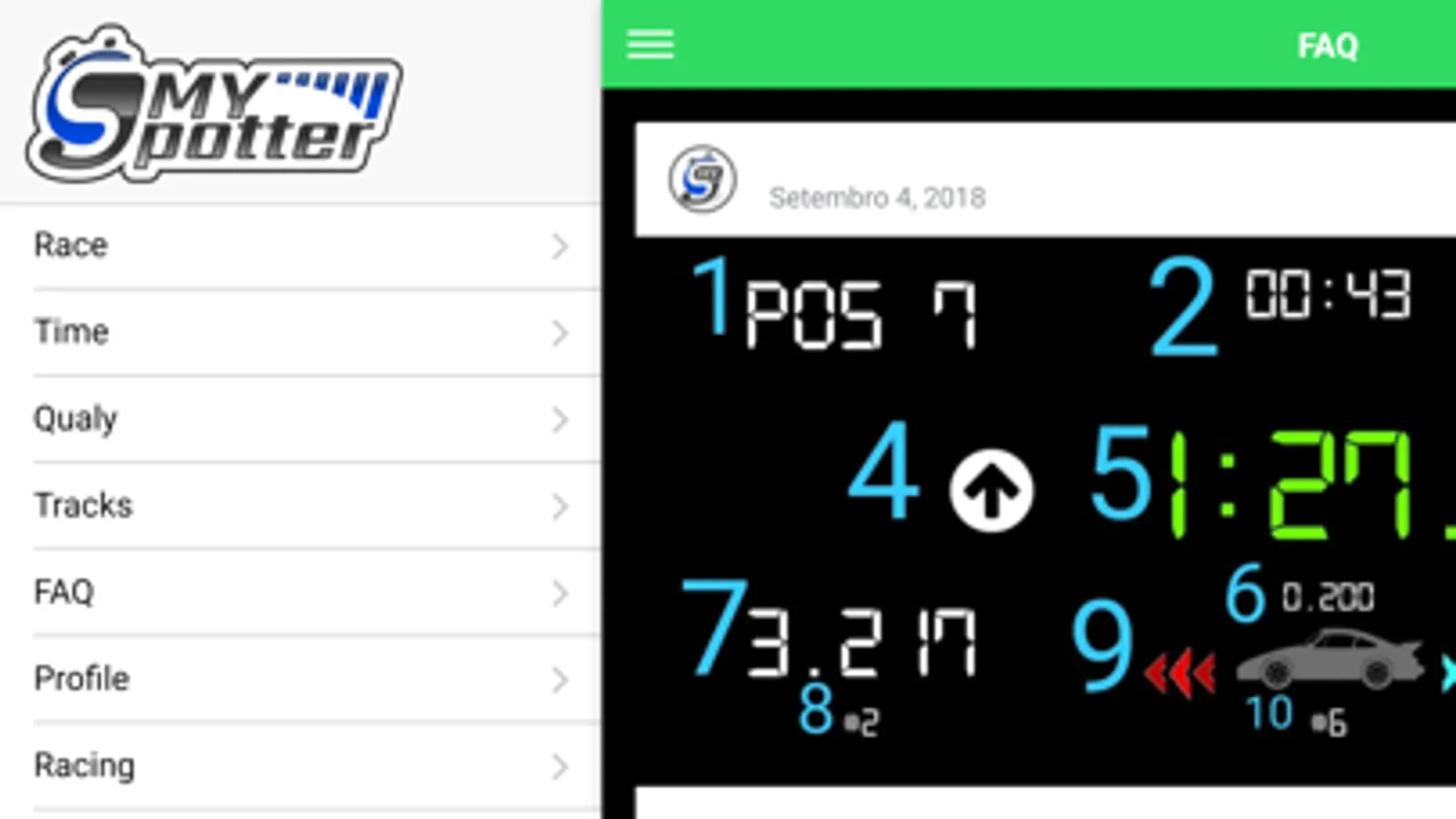 MySpotter® is a live timing app that provides you real time information, not only of your laptimes, but your direct competitor´s, while you are on track racing. Helps you improve at each single lap and strategically plan your race