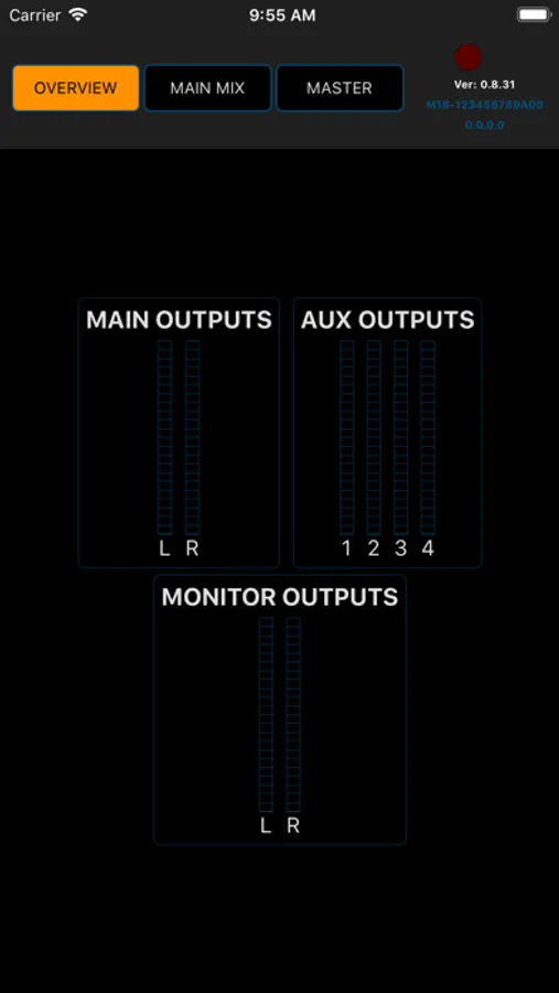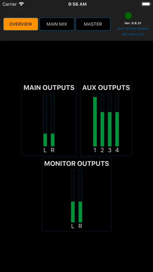 4 AUX Outputs (2 mirroring Monitor on selection) plus 2 Main Left and Right Outputs and 2 Monitor outputs on stereo ¼ Jack