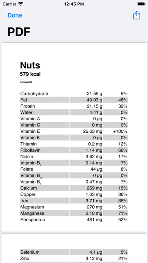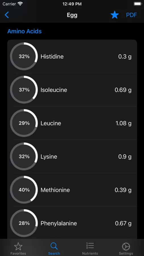 Know what you eat to eat better. Get detailed information (calories, macronutrients, vitamins, minerals, amino acids...) on hundreds of foods with this extensive database.