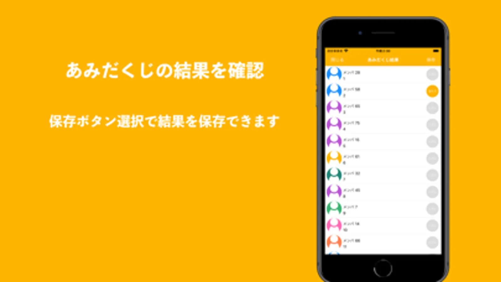 ・あみだくじの結果を保存(新規保存、上書き保存)できます。