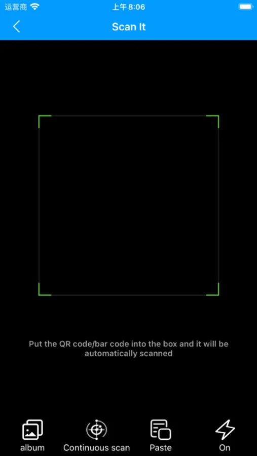 -QR code dual-core high-speed scanning, supports three methods: camera scanning, album import recognition, and picture paste recognition.