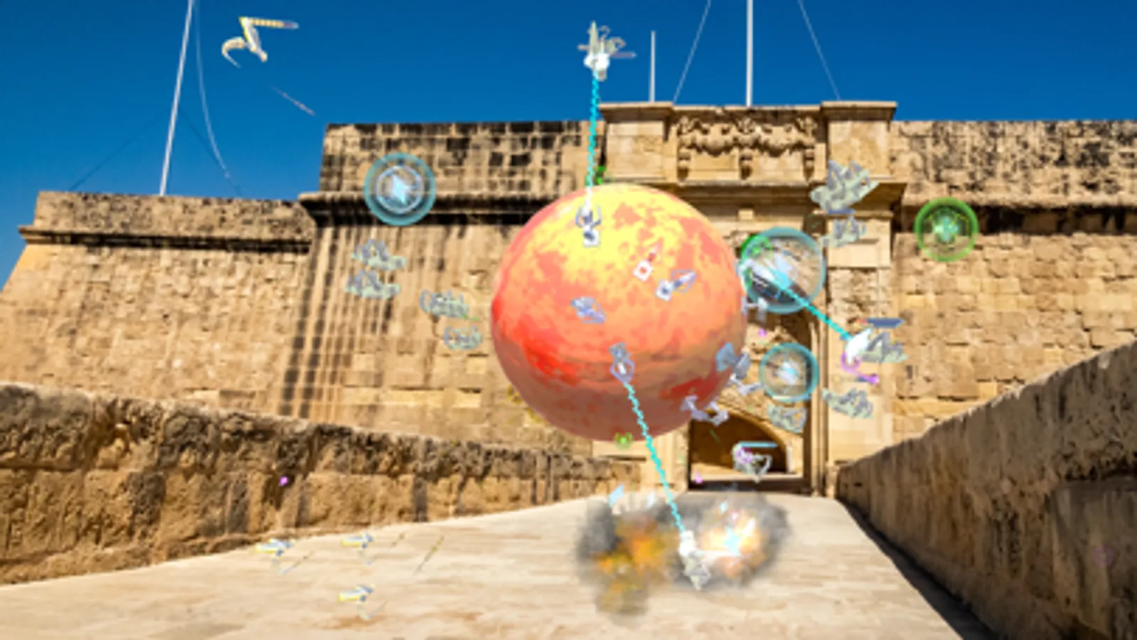 With AR, you can physically walk around your planet, watch the Bugminators coming out from the wormholes up close. They can come from any direction, so you must move and make choices fast, wheater it will placing turrets or rotating the planet.
