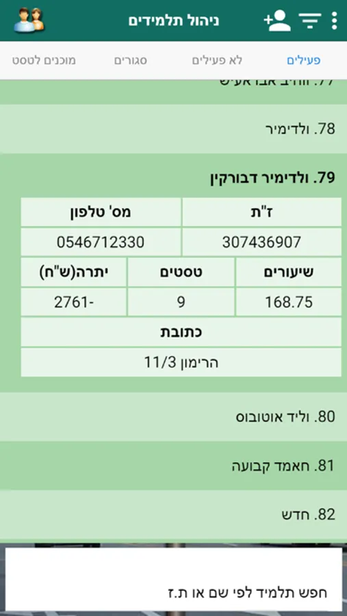 התוכנה המובילה בישראל עבור מורה הנהיגה. התוכנה כוללת יומן שיעורים, יומן תלמידים,יומן מורים ורכבים, הנהלת חשבונות מלאה מאושרת מס הכנסה וממשק דוחות עשיר. התוכנה ניתנת להורדה בחינם למשך חודש ומאפשרת בין היתר זיהוי קולי ושליחת הודעות אוטומטית בקביעת שיעור לתלמיד.