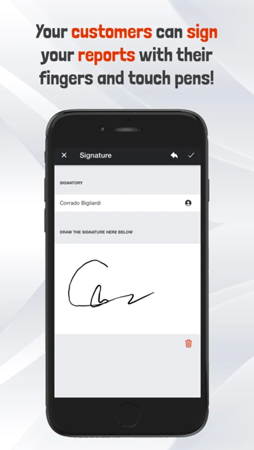 - Your customers will be able to sign your reports with their fingers and touch pens!