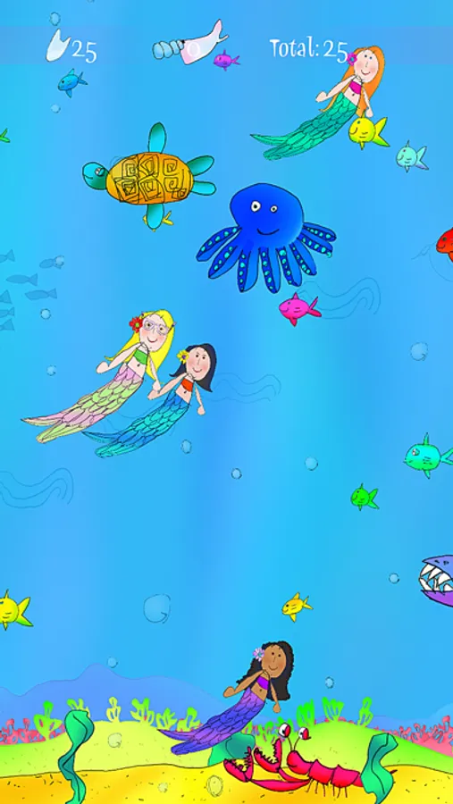 Help the mermaids save our seas by collecting as much plastic rubbish as you can - but be careful you don't bump into those clumsy sea creatures or you will drop all your bags and bottles and have to start again!