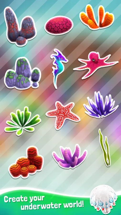 • Create your own unique underworld with 60 beautiful sea plants and animals,