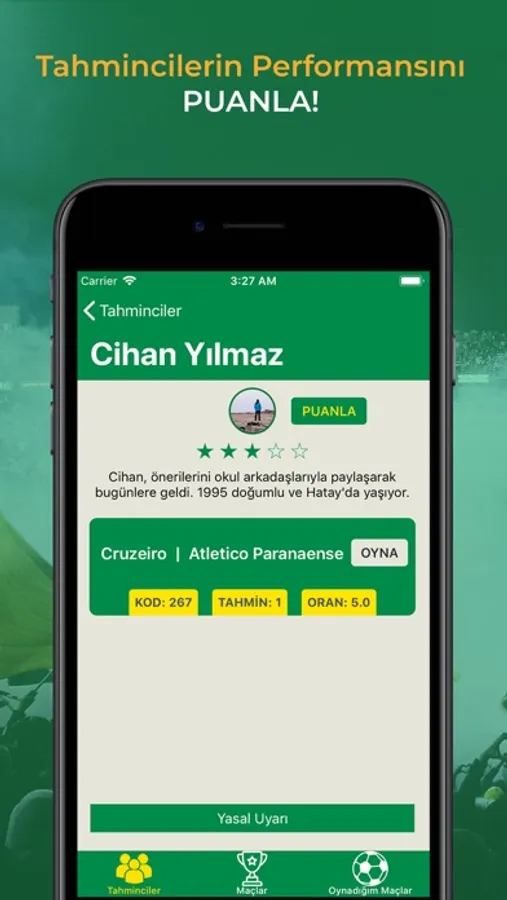 Uzman iddaa tahmicilerinin ücretsiz tahminlerini görün. Maçları, detaylarıyla birlikte inceleyin. Ayrıca tahmincilerin maçlarını işaretleyin, onları puanlayın!