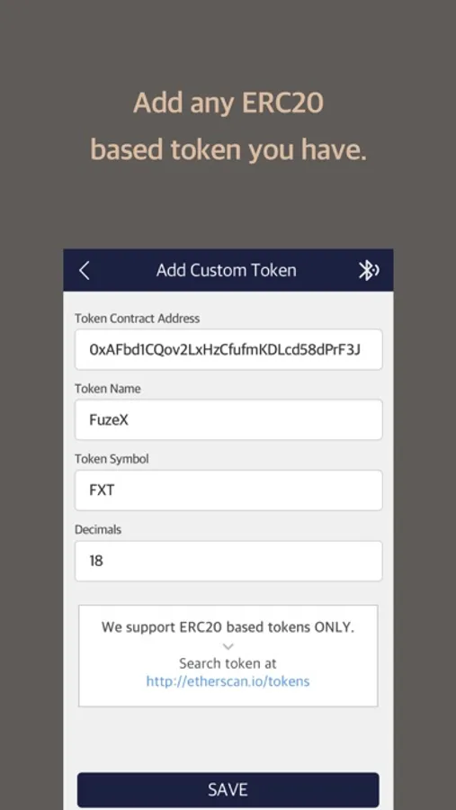 - Custom token add function supports all ERC20 cryptocurrency other than default supported cryptocurrencies.