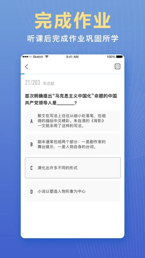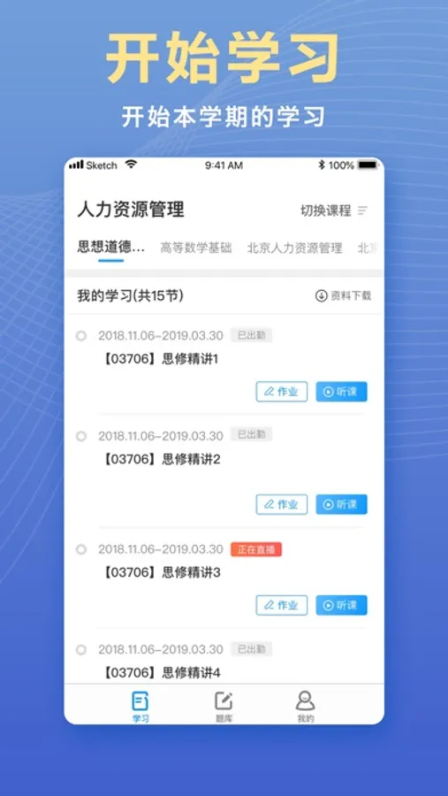 2、学员可以在app内听直播课、重播课、完成随堂考、作业、题库练习等学习任务。