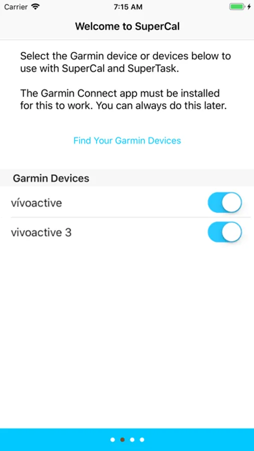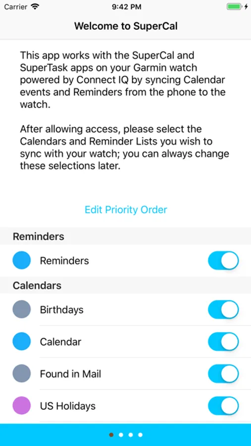 SuperCal is a companion app for Garmin Connect IQ watches that displays your iPhone Calendar events and Reminders on your Garmin watch.