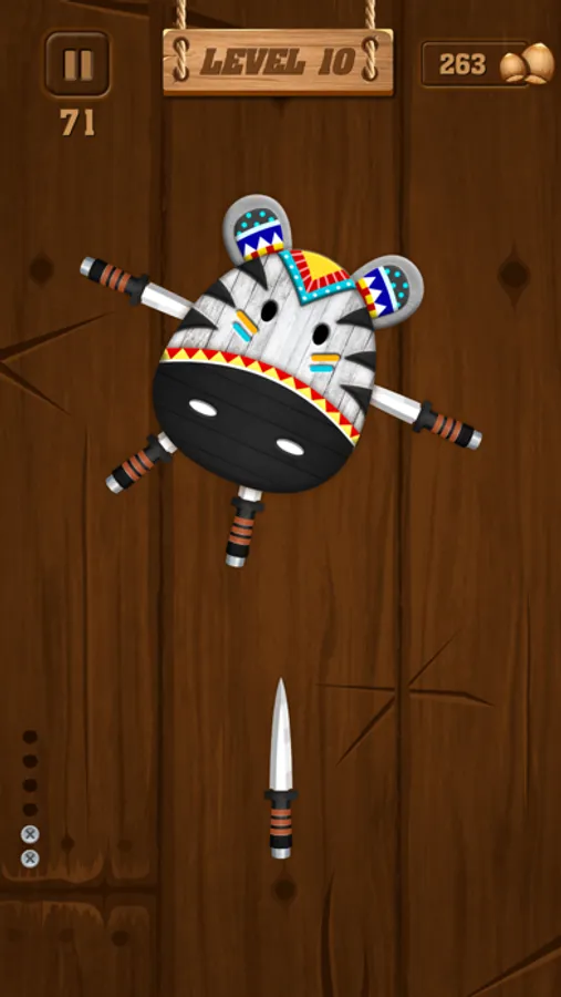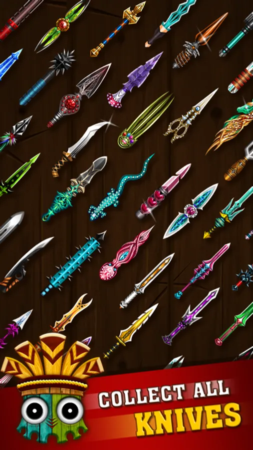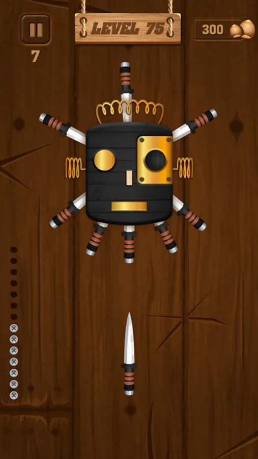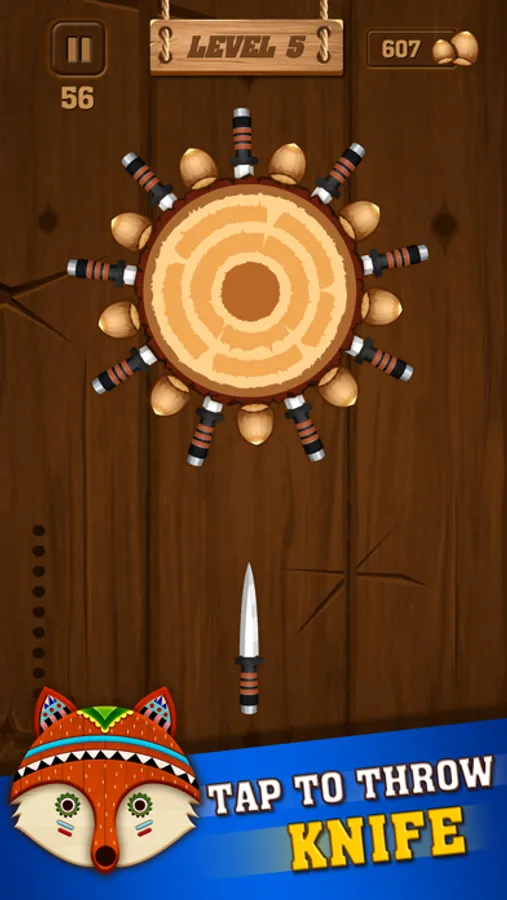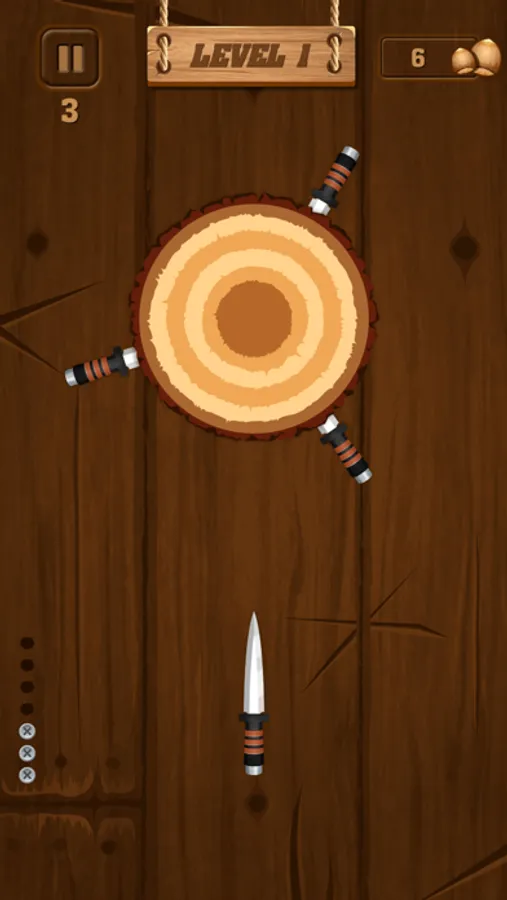 Throw the knives into the logs to break them.. Each 5th stage is defended by a boss - beat them to get exclusive knives!