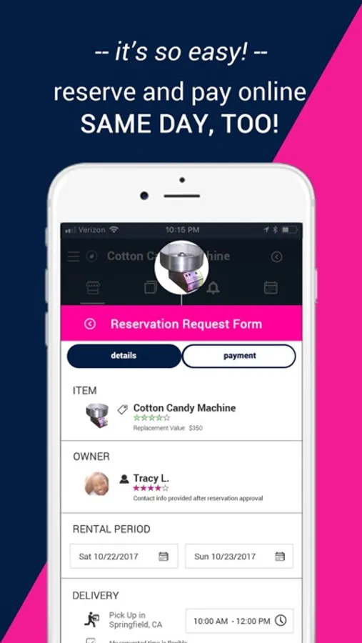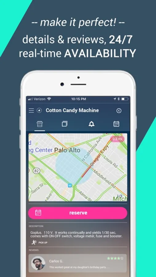 Reserve the item immediately through the app -- no phone calls or emails. 24/7.