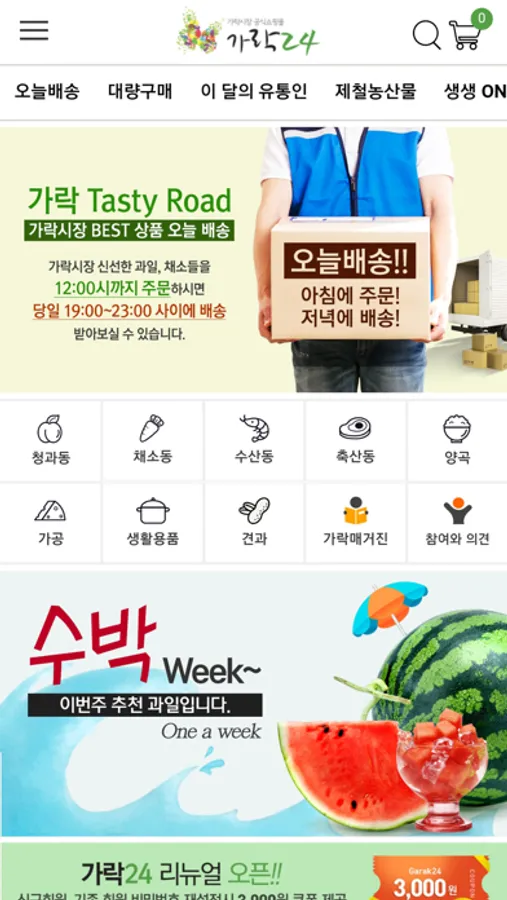 이제 가락24 앱으로 신선한 농산물을 가정에서 받아보세요!