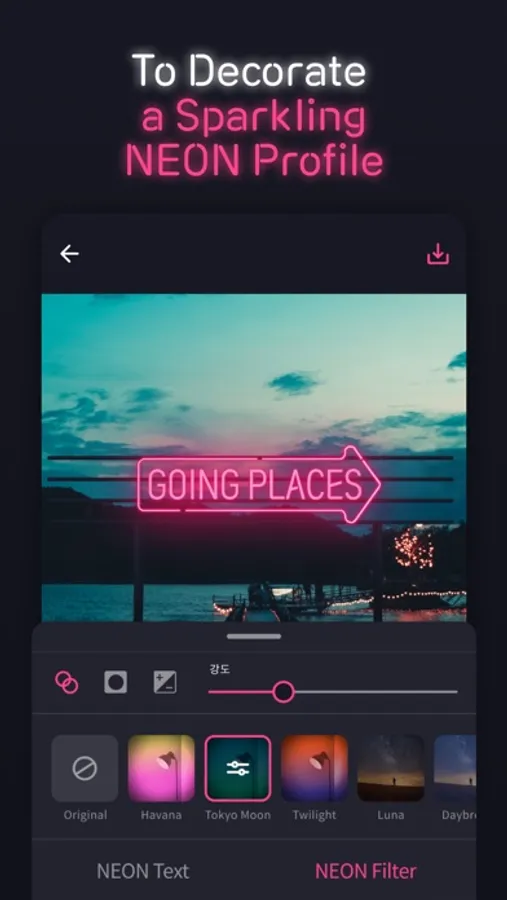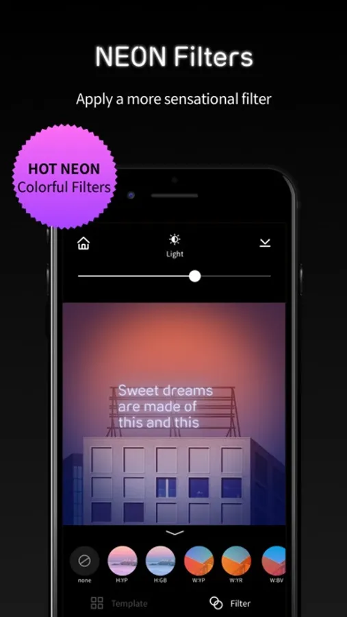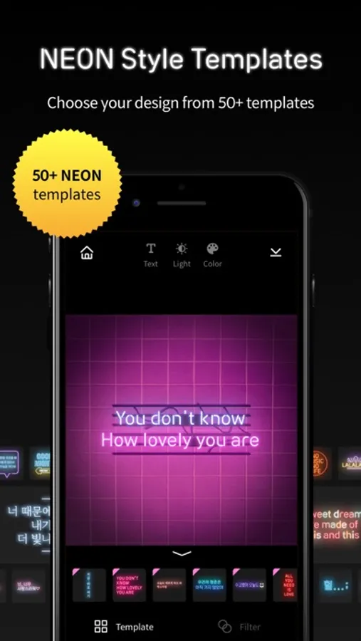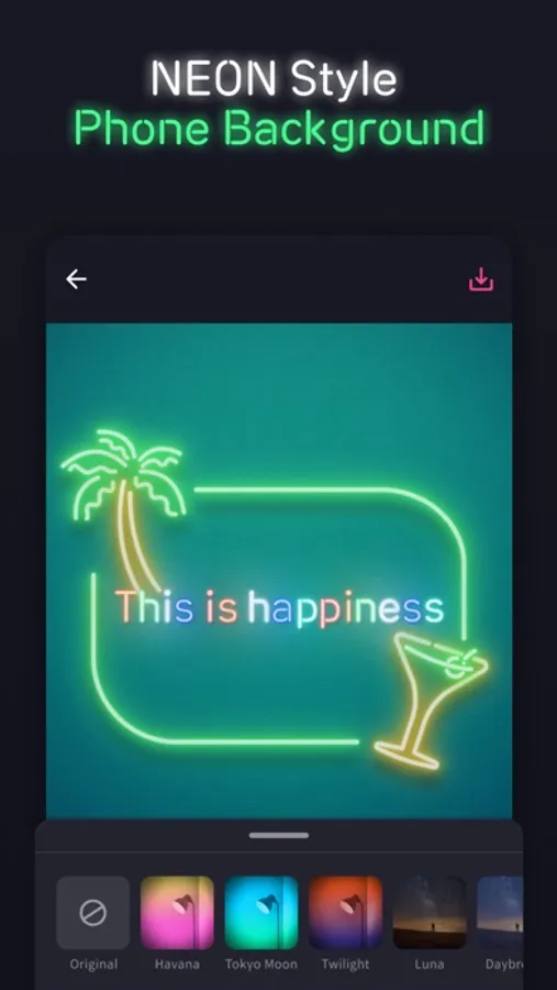 Add colorful NEON design templates and NEON text and icons onto your photos and videos.