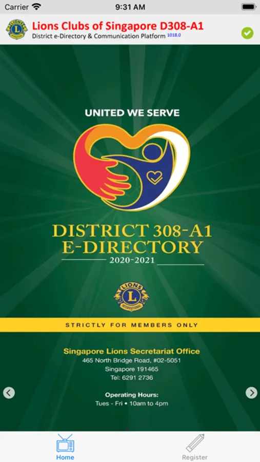 Lions Clubs of Singapore District 308-A1 membership e-Directory. The apps will allow the registered Lions members to have access to the cabinet directory, POAs & general members within 308-A1. It also incorporate the individual membership profile card (barcode) that allow ease of future event registration.