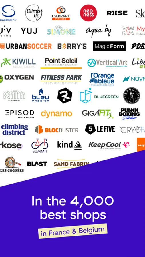 - Discover a network of 4000+ partner infrastructures: JIMS, EPISOD, Chez Simone, Arkose, Aqua By, LE FIVE, Swedish Fit, Keep Cool, etc.