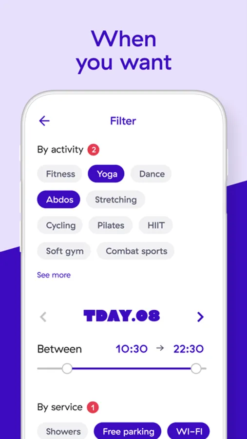 - Access 300+ sports and well-being activities: fitness, tennis, climbing, yoga, pilates, swimming, boxing, football, golf, cryotherapy, massage, etc.