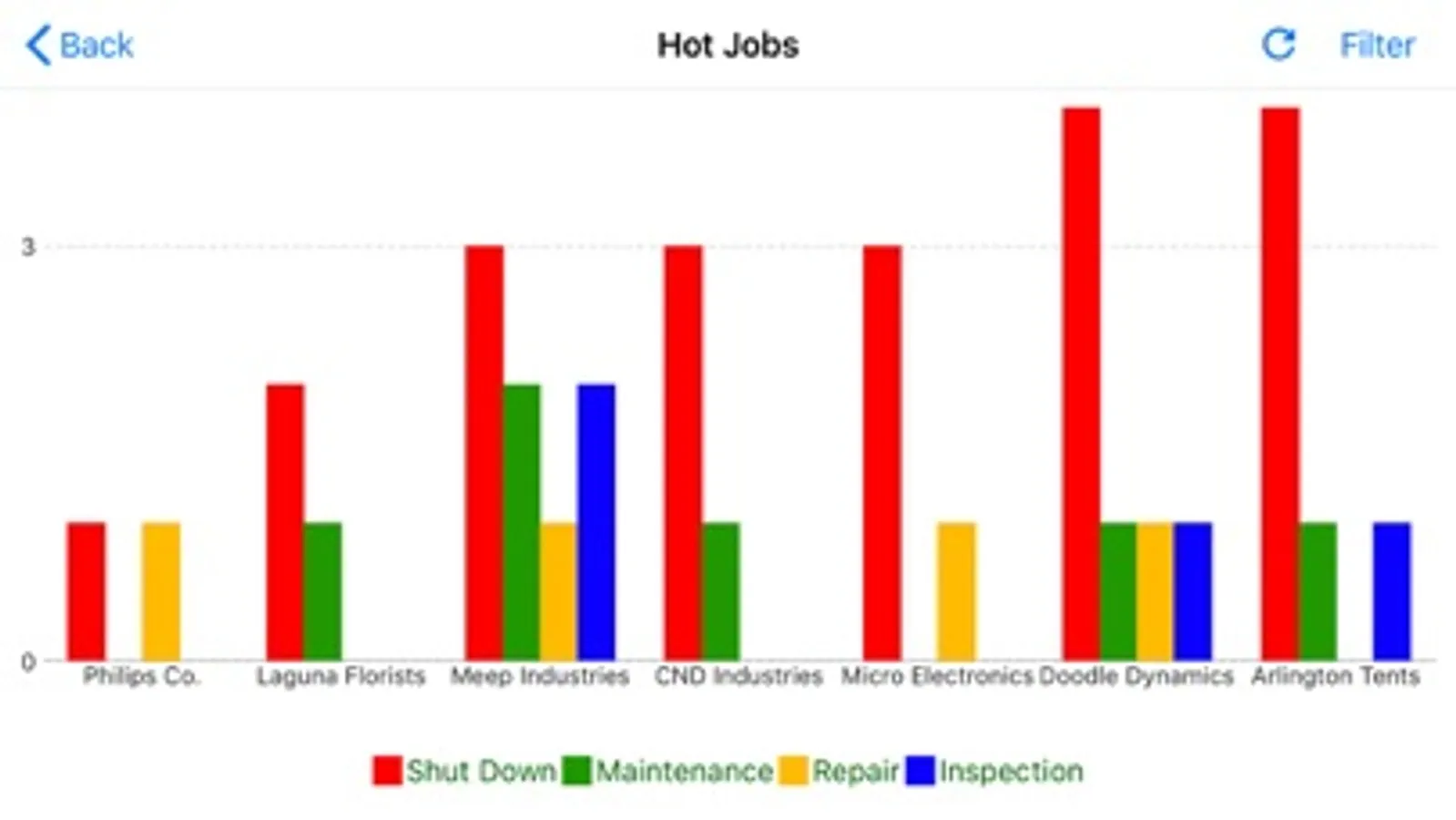 An analytics section that will keep track of service frequency with up to ten jobs for the Week/Month/Year to help find your trouble areas.
