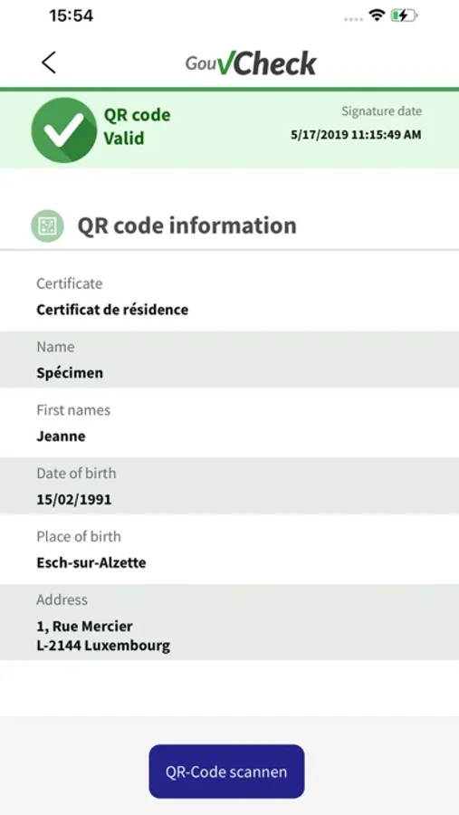 With GouvCheck, you can authenticate an official document issued in Luxembourg, in real time and for free, using a QR code printed on the document.