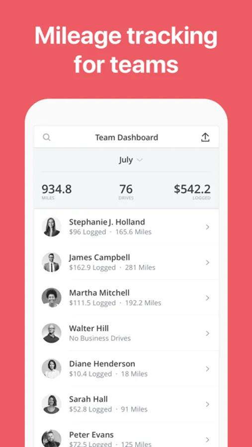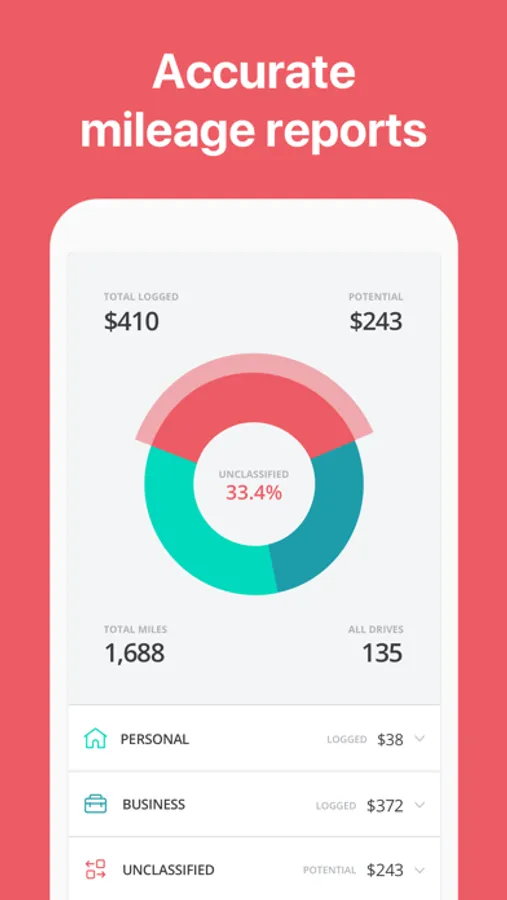 Help your team focus on things that matter. Simplify the mileage reimbursement process with accurate and automated reports. With the app running in the background, our smart tracking technology automatically detects drives, logs total miles, route and location. Team members classify their drives as business or personal with a single swipe.