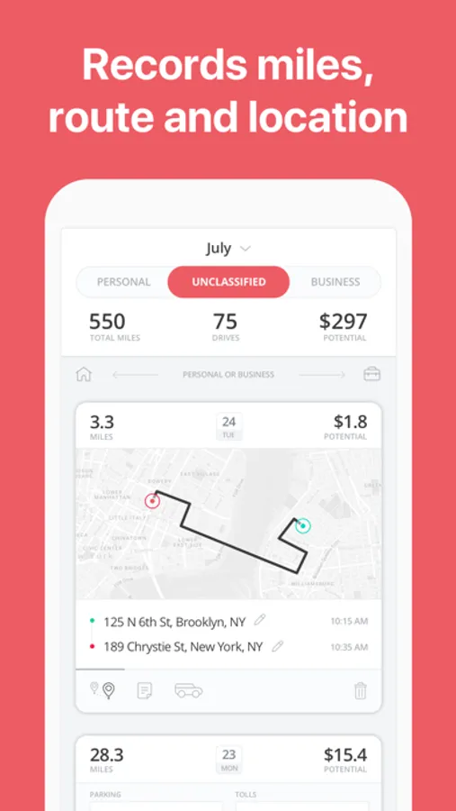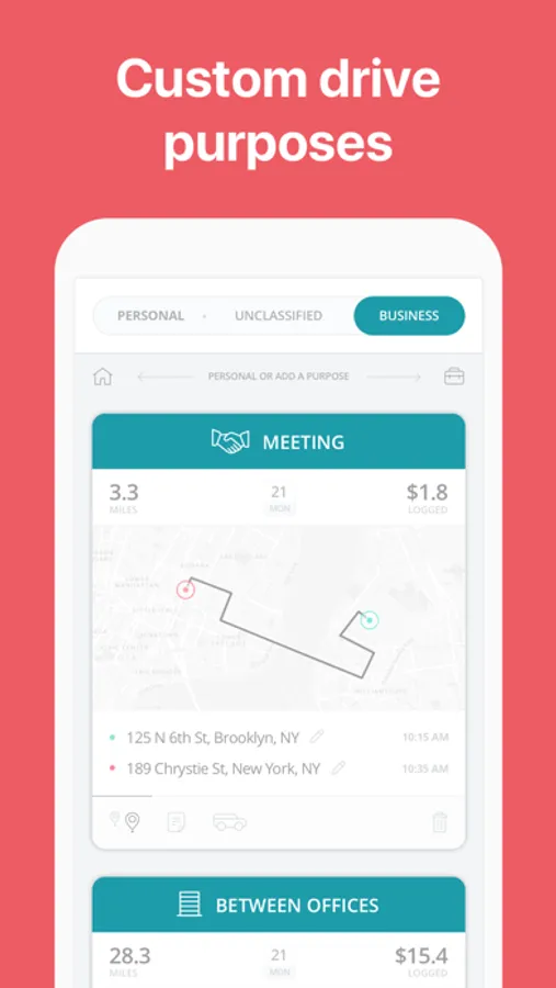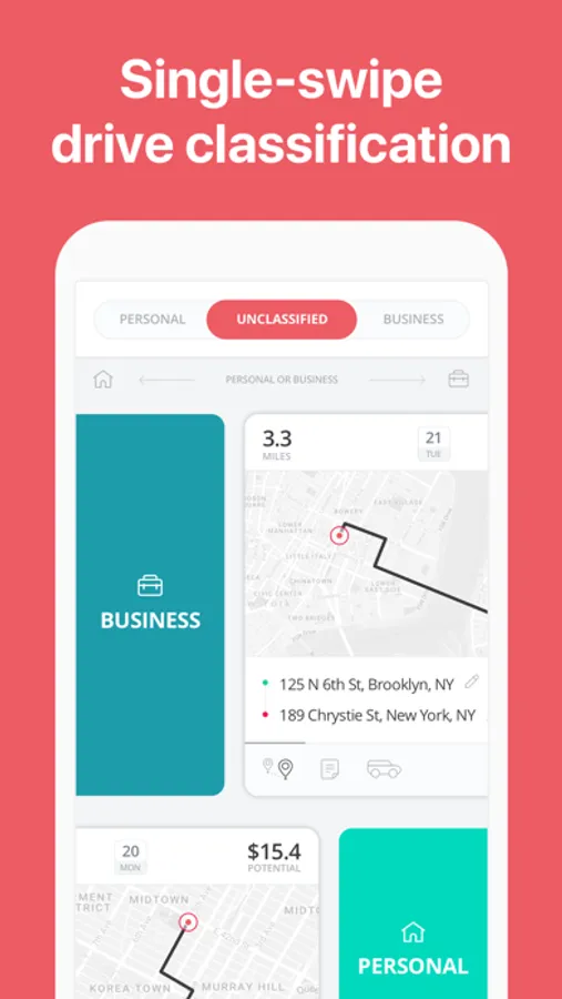 You can classify your drives as business or personal with ease - swipe right for business or swipe left for personal.