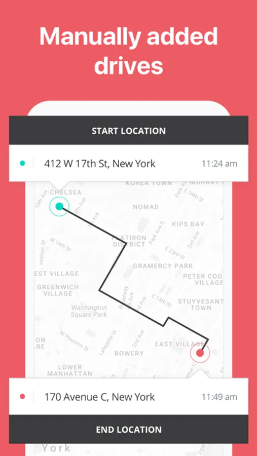 Set your favorite locations for accurate and easy-to-read reporting. As soon as you edit an address, we’ll store and reuse it for future drives.
