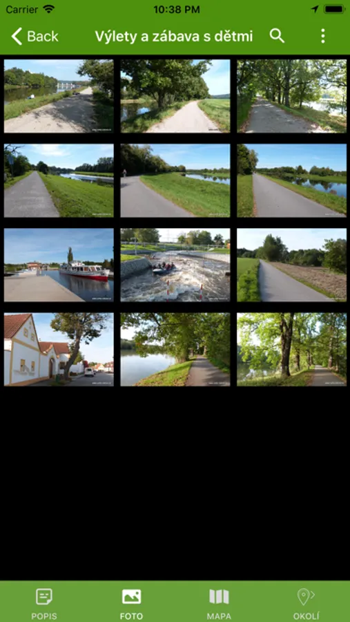 - interaktivní zobrazení popisu článku, výškového profilu, cykloturistické mapy, fotogalerie a okolních zajímavostí