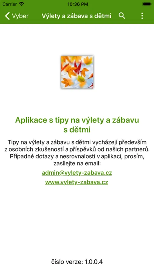 Tipy na výlety a zábavu s dětmi vycházejí především z osobních zkušenosti a příspěvků od našich partnerů. Případné dotazy a nesrovnalosti v aplikaci, prosím, zasílejte na email: admin@vylety-zabava.cz