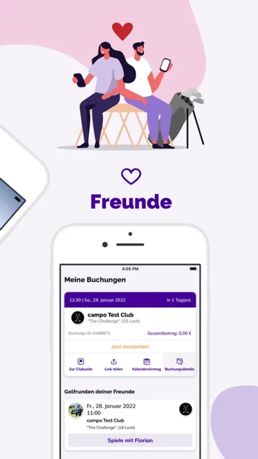 Du kannst ab sofort die gebuchten Golfrunden deiner Freunde sehen. Natürlich nur mit deren Einverständnis. Buche dich ganz einfach hinzu und genießt eine tolle Runde zusammen.