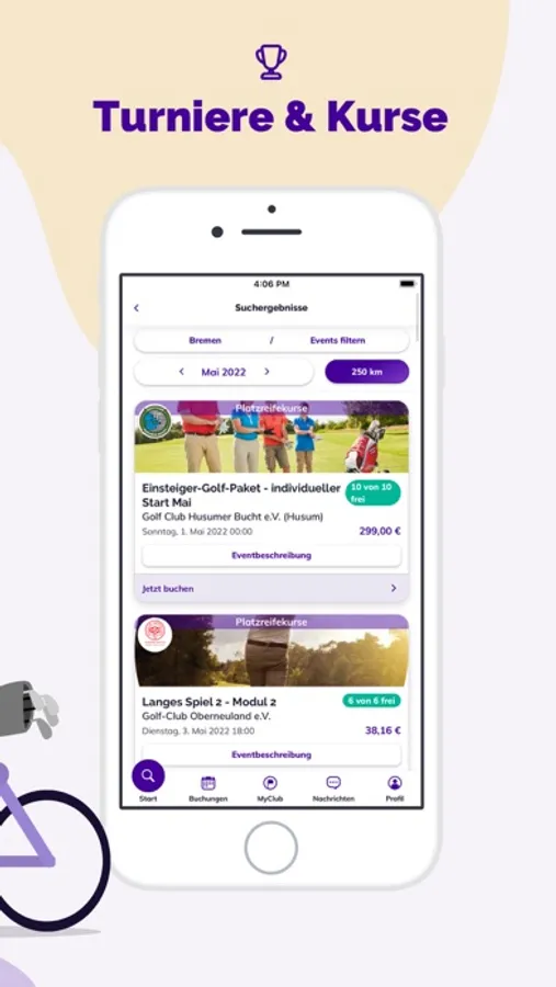 Nimm an einem Turnier teil, sahne fabelhafte Preise ab und verbessere dein Handicap.