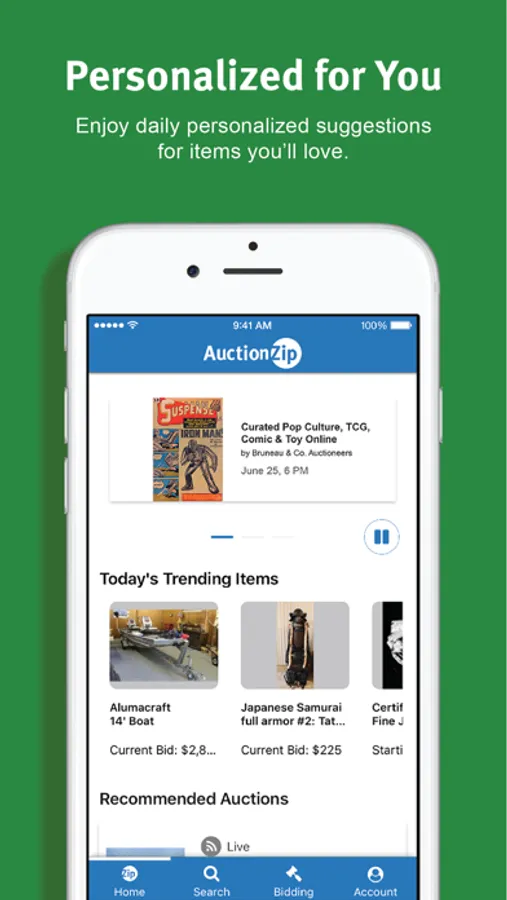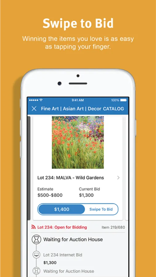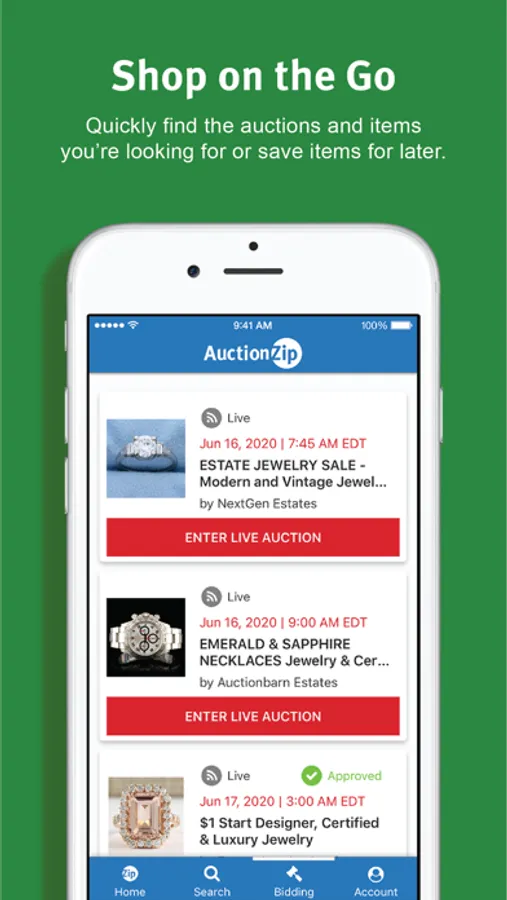 Online auctions are just two taps away. See which auctions are running in real-time now as soon as you open your app. Bid on treasures like rare coins, sports memorabilia, antiques, fine art, jewelry, automobiles, and more.