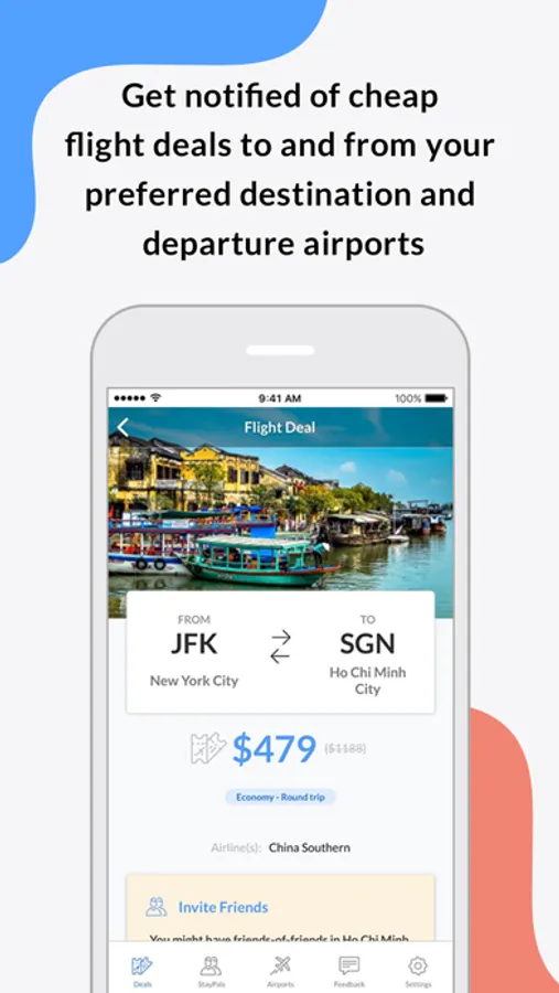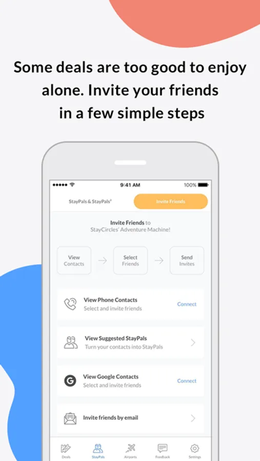 With the Adventure Machine mobile app, you’ll get the best flight deals from your selected airport to your preferred destination straight to your smartphone. See your friends and friends-of-friends in the destination to easily use StayCircles to book stays with friends or friends-of-friends located or living at your destination allowing you save up to 80% of the regular cost of flights and hotels.