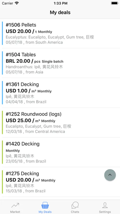 Users can use the WoodsApp to make just in time offers, send pictures and chat. It is a perfect tool to employ during site visits to timber stocks, ports and forest sites. WoodsApp gives the opportunity to replace whatsapp and other personal chat apps as a professional environment to trade timber worldwide.