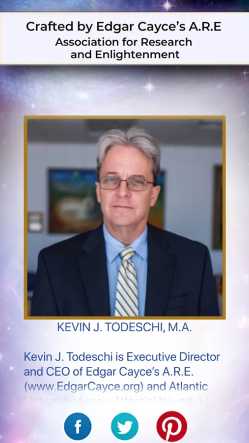 This App draws from hundreds of concepts and ideas contained in the Edgar Cayce readings dealing with each individual’s capacity to change her or his life for the better physically, mentally and spiritually. Compiled by Kevin J. Todeschi, Executive Director & CEO of the Cayce work, further information about Edgar Cayce’s A.R.E., as well as activities, materials and services are available at EdgarCayce.org.