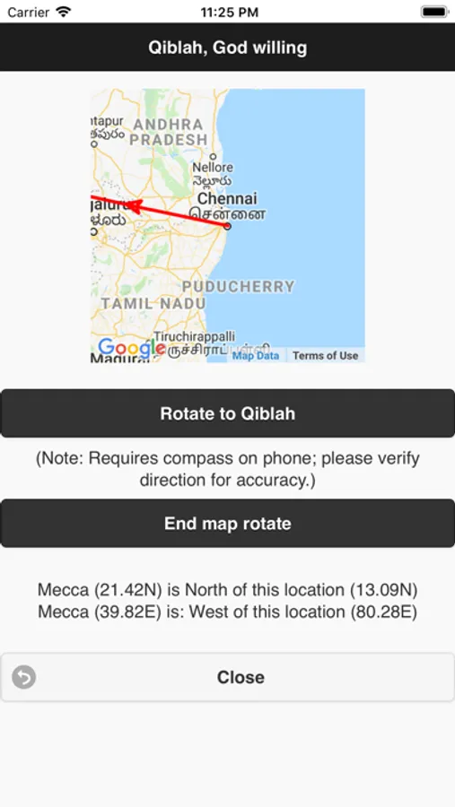 Qiblah (direction of prayer): Click on "More Salat options" to determine the direction of Qiblah (the direction one faces during the Contact Prayers).