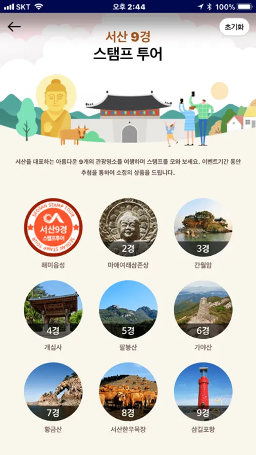 -스탬프투어 : 서산을 여행하며 서산 9경 스탬프를 수집할 수 있습니다.