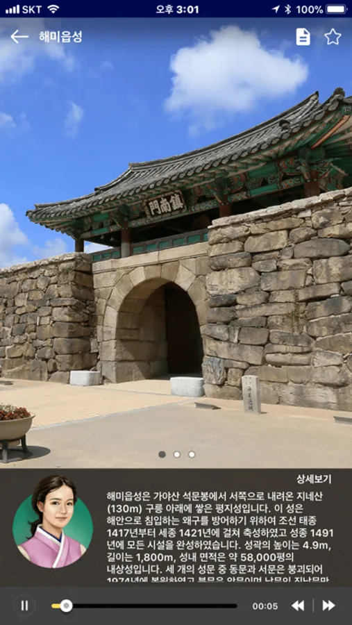 -오디오 가이드 : 관광지의 역사와 문화, 숨겨진 이야기를 음성해설을 통해 들을 수 있습니다.