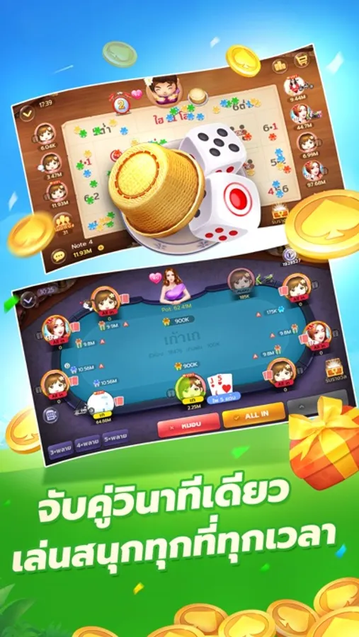 การเล่นของเรา : ดัมมี่, 4K.ป๊อกเด้ง. เท็กซัสฯลฯ . หมายเหตุ : เกมนี้สําหรับผู้เล่นที่บรรลุนิติภาวะแล้วเกมส์นี้ใช้เพื่อความบันเทิงเท่านั้น ไม่สามารถใช้แลกเป็นเงินจริงหรือแลกชิปเกมเป็นเงินจริงได้นะ ประสบการณ์และความสำเร็จที่ได้รับในเกมนี้ไม่ได้หมายความว่าจะได้รับความสําเร็จในการเดิมพันในอนาคตด้วยเงินจริง .