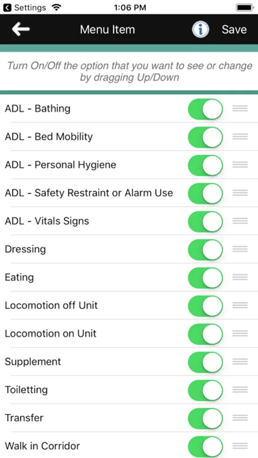 The things we normally do in daily living including any daily activity we perform for self-care such as feeding ourselves, bathing, dressing, grooming, work, homemaking, and leisure. The ability or inability to perform ADLs can be used as a very practical measure of ability/disability in many disorders. The application's purpose is to record daily living activities to identify such disorders.